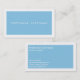 These simple business cards are perfect to hand out at any social or networking event. They feature a light blue background with a thick white border for a modern look. The front contains room for your name, while the back contains room for name, job title & contact details.