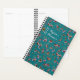 Pretty personal planner with coneflowers and bumblebees pattern. Tranquil teal blue color with design that will please any nature lover. Bees buzz all over the front and back cover visiting echinacea (coneflowers) with pink and rust brown blooms. A matching teal banner at the top holds your choice of title (the example includes a name), along with the year. This is the smaller 5.5 x 8.5 inch size, but the design also works for the larger size. A fun little page of stickers is included.