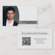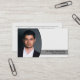 This business card design features a photo placeholder with template name and occupation. The back includes text fields for the business name, details and qr code. Replace the placeholder photo with your photograph on the front and your QR code on the back. Fill in the personalise fields or click customise to select a font style, size, and colour you like. Have the QR code link send potential clients to your website, client reviews, project photos or another specific link. The placeholder photo is courtesy pexels.com.