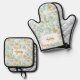 Personal Tea Monogram Mint Green Oven Mitt & Pot Holder Set