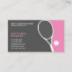 Pink Personal Tennis Coach Instructor Club Appointment Business Cards. This business card is great for many kinds of tennis related businesses. An appointment card on the back. Elegant and modern business card for professional tennis coaches, trainers, partners, instructors who provide tennis lessons or tennis training. It's also great for tennis clubs, schools / academies. You can change some the cards colours to the colours you like best. A standard business card size. Business card inspiration for any kind of tennis related business. Business card dimensions are "3.5"x 2". This business card is designed by http://www.superdazzle.com