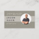 Grey/ beige business card with photo. Suitable business card for the personal trainer or fitness coach, gym business card, weightlifting coach or athletic sports coach.