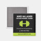 A bold promotional magnet for a personal trainer, gym owner or coach. A silhouette of a green dumbbell stands out against the rich black pinstripe background. Your main contact information goes below with your website or other information standing out in the lime green bar at the bottom. Available in alternate colors with matching products.