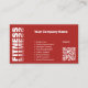 A personal trainer red business card exudes energy with its colour combination of red and white. The specifics of the biz card are the typography logo, and a list of services with a call to action when scanning the QR code. A service describing photo is on the back with name, title, and contact details. For assistance with customisation or to discuss a custom design, contact https://t.me/KBMD3signs_chat.