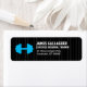 A bold return address label for a personal trainer, gym owner or coach. A silhouette of a bright blue dumbbell stands out against the rich black pinstriped background. Add your personal or business name along with your return address information next to it. Available in alternate colors with matching products.