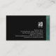 This striking personal tutor education and training professional business card features a elegant abstract teal turquoise grunge texture on the lower border. Your name and title appear just above this textured border, over a jet black background. The same patterned theme appears on the back of the card, except the stripe is on the right border. Your business logo and contact details appear on the black section of the card. This business card design makes a striking first impression and is perfect for high-impact, education, training, trainers, tutors, learning, professional themes.