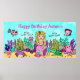 Beautiful blonde haired Mermaid that I hand drew with brightly coloured coral, fish, turtle, crab and other fun sea life. A pretty tropical scene poster for your daughter's birthday. Just add her name int he personalise area.