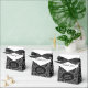 Easily personalise the text on this black and white 60th birthday party theme with the templates supplied. The design in the background is a black and white abstract of the number sixty (60) repeated in varied sizes and angles in an all-over typography print. There is a white flap on the top and an oval plaque in the centre front for your text. Use the easy templates to add your own words, name initial, or monogram. A great idea for a gift or party favours for your 60th birthday party.