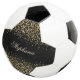 A black and gold glitter overlay leopard print cheetah print girls soccer ball. Personalise with her name, initials or text.