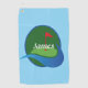 A Blue Golf Towel With A Golf Hole With Flag Centre For Either A Man or Woman You Can Customise With Name
