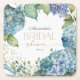 Personalise Bridal Shower Blue Hydrangeas Square Paper Coaster