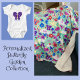 Personalise this fun and cute, baby blanket featuring colourful butterflies, flowers, shapes, clouds, and the sun. The baby's name becomes part of this whimsical pattern that is set against a sage green background. This makes a wonderful, keepsake present for anyone who is having a baby or just had one. The fleece blanket is very soft and washes well.