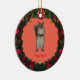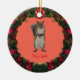 Personalise photography of a wild animal, cute grey Squirrel standing, designed with Christmas wreath around it on a Ceramic Ornament.
