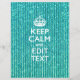 Your personalised Keep Calm saying on a vibrant turquoise decor. A personalised Keep Calm style saying on a one of a kind gift. Humourous or whimsical try on your creative words on two editable lines of text. Remember to use CAPITAL letters for best results.