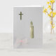 Personalise Gold Holy cross, candle and pink bow Card