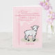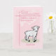 A sweet lamb is standing on a patch of grass with the word Baptism under it. Customise this pink card for your great granddaughter's Baptism. Add her name and the date she was Baptised as a beautiful keepsake card!