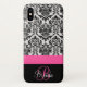 Personalise Hot Pink Black Damask Pattern Case-Mate iPhone Case