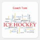 Personalise, Ice Hockey Coach Thank You in Words Square Sticker