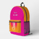 Lightweight and durable, our custom all-over-print Backpack is just what you need. The spacious interior is ideal for travel, school, gym, or any mobile storage need. Bring your stuff with you in style! Features Adjustable padded shoulder straps, two chambers on the inside for laptop storage, mesh side pockets and an identification label.