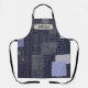 Personalised dark blue apron with traditional japanese sashiko printed design that resembles stiches and patches and custom name.
