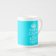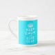 Personalise Keep Calm Your Text Turquoise Accent Bone China Mug