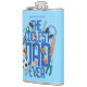Well made flask, a little better than I had expected. Flask came in clear plastic box which gave it a nice presentation when I took it out of the zazzle packaging. Image is not printed on flask but on sticker. Don't know how this will hold up I haven't used it yet. This would make a Great gift! I plan to purchase more for friends! Cheers. I thought a little brighter than computer. Very crisp, writing wasn't