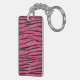 Personalise name fuchsia pink glitter zebra stripe key ring