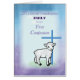 When your granddaughter makes her First Confession, give her this special card. A gentle lamb is seen with a cross on soft purple and blue colours. Make it extra special by adding her name!
