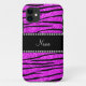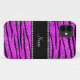Personalise name neon pink glitter zebra stripes Case-Mate iPhone case