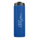 Personalise Name White Script Vertical, Deep Blue Thermal Tumbler
