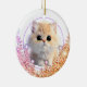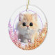 Elegant pretty sparkling Christmas pink gold pinetrees with cute kitty! Enjoy customising your ornament with text or your own photo!