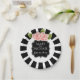This is an elegant paper plate for your parties. It features black and white stripes around the edge. The centre has a black frame and pink flowers. It is ready for you to personalise it with your wedding date, expected due date, birthday, anniversary etc.