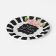 Personalise plate black & white stripes pink flora
