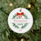 Personalise Red Green Wreath Family Name Christmas Ceramic Tree Decoration