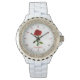 Personalise red rose with leaves painting art on any watches for women, man and kids. For any occasions. Customise your name/text.