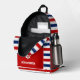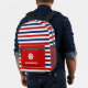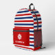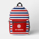 Personalise Red White Blue Nautical Stripes Rudder Printed Backpack