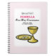 Send blessings and wishes to a special girl as she makes her First Holy Communion. A gold chalice and paten stand out against the white background and pink border of this gift, souvenir, giveaway and party essential. Beautiful to send to her on this religious and holy day.