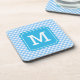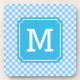 Personalise Stylish Baby Blue Gingham Monogram Coaster