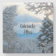 A peaceful and serene view of the snowy Rocky Mountains in Colorado through pine tree branches, with an overall blue tint. Personalise with your own text or date to give someone a special customised memory souvenir of a ski trip or hiking trip or just a visit to beautiful Colourful Colorado.