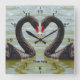 Personalise Two Black Swans birds in heart shape Square Wall Clock