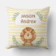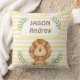 Personlize cute watercolor lion yellow white stripes throw pillow.