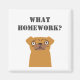 What Homework? Magnet with a confused dog and Bold Stencil Text that can be personalised