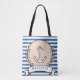 Personalise White Blue Horizontal Stripe Anchor Tote Bag - The text on this product is replaceable - To edit simply click on the word PERSONALIZE then replace the default name accordingly.