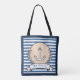 Personalise White Blue Horizontal Stripe Anchor Tote Bag