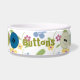 Personalise your pet's name on this adorable floral background and buttons bowl, change the font and colour as well.