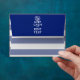 A personalised keep calm saying, with an American yacht flag nautical symbol on a navy blue decor. A sporty custom nautical style gift for yourself or for someone special, on or off the boat. Message