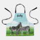 This print all-over apron was created for kids. The design features a landscape background with rolling grassy hills and a blue sky. Two Zebra were added as overlays and a girl's name. Buy as shown or edit to create your own kids apron design