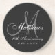 Personalised 10th Wedding Anniversary Coaster with monogram and name in white lettering on a black grey background. Monogram Logo Design by Elke Clarke © 2008. Customise with your last name, monogram and wedding date using the prompts or select "customise it" to have more editing options.