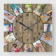 Personalised 12 Photo Collage Rustic Natural Wood Square Wall Clock