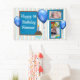 Blue Balloons tan brown and whit striped first birthday theme for a baby boy. Personalise this birthday banner by adding your baby's photo and name in the customise area.